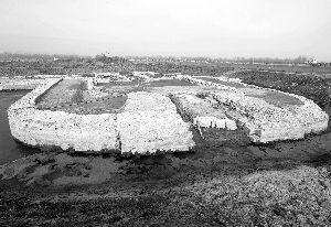 因洪水肆虐而被深埋水下330多年的“东方庞贝”泗州城,经过南京博物院考古所三年多的考古发掘,近日已确定了古泗州城遗址范围,一大批珍贵的文物“重见天日”。图为考古人员发掘出的古泗州城一角。新华社发