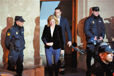 2月8日,西班牙马约卡岛帕尔马,克里斯蒂娜公主就涉嫌逃税和洗钱出庭接受听证。这是西班牙历史上首位王室成员作为犯罪嫌疑人出庭。