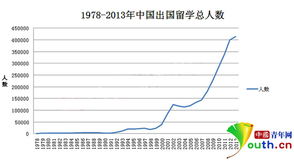此后不久,由社科院社科文献出版社出版、中国与全球化智库编撰的国际人才蓝皮书《中国留学发展报告(2014)》在京发布?!侗ǜ妗分赋?,截至2013年底,中国出国在读留学生总数达41.39万,再创历史新高,中国依然稳坐世界留学生来源国的头把交椅。与此同时,中国留学发展呈现出明显的“低龄化”趋势,高中生成为继研究生、本科生之后的第三大出国留学人群。