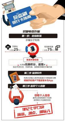 李昆表示,近两年,随着智能手机的普及,电信诈骗已超越了纯粹的“老乡借钱”、“qq好友求助”等传统模式了,而是进入了利用高科技、多套诈骗手段一条龙的犯罪阶段。首先是利用伪基站和短信群发器向大量手机用户发送诈骗短信,大多是兑换积分、返现等贴近市民生活、伪装性高、容易被忽略的诈骗内容。同时,利用大多数人将手机和银行卡绑定的习惯,诱骗手机用户下载安装木马App,窃取个人信息,最终达到窃取银行卡信息、盗窃银行卡金额的目的。从历年的数据来看,针对银行卡的诈骗中,大约25%利用了伪基站发送诈骗信息,75%利用了短信群发器。