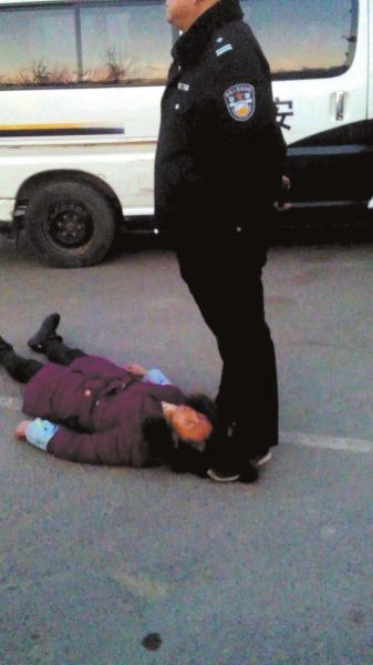 警察脚踩讨薪女工头发