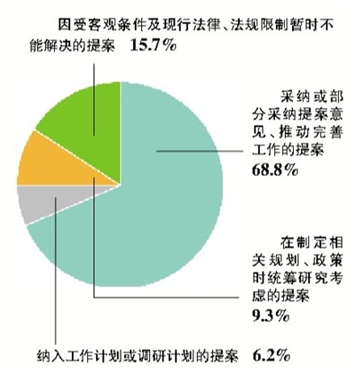 采纳或部分采纳提案意见、推动完善工作的提案 68.8%