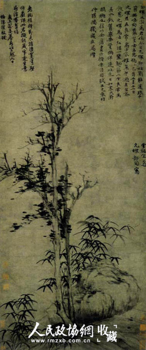 元代倪瓒《丛篁古木图》,庞莱臣旧藏