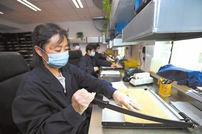 工作人员拆封来信。