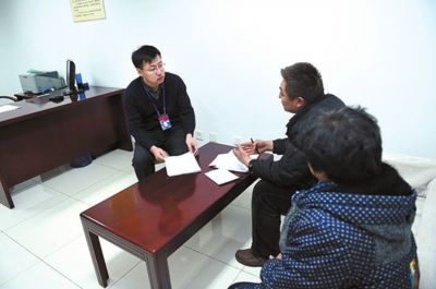工作人员在接谈室内与来访群众面对面交流。