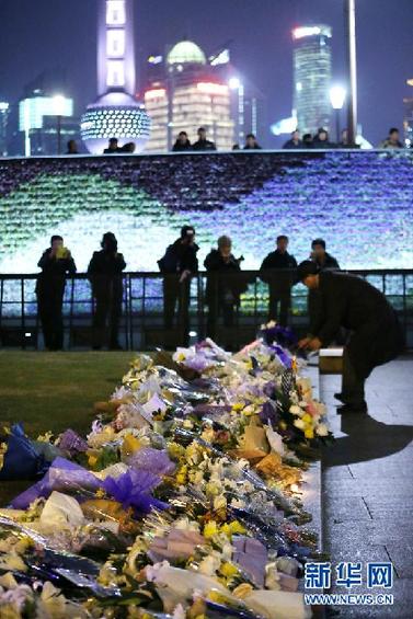 1月1日,市民自发来到外滩献花。当日是2015年的第一天,本是个欢喜的日子,但是悲喜之变,有时只在瞬间。2014年12月31日晚23时35分许,上海外滩陈毅广场发生群众拥挤踩踏事故。沉痛的教训,应促使城市的管理者们更多从深层次查找隐患、完善制度、加强管理,永远记住这锥心之痛。 新华社记者 丁汀 摄