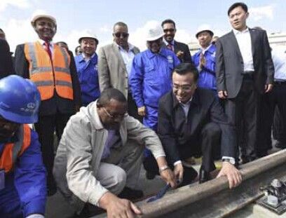 2014年5月5日,国务院总理李克强考察亚的斯亚贝巴轻轨项目,埃塞俄比亚总理海尔马里亚姆陪同??吹街邪K皆惫ふ谄坦熳饕?,李克强同海尔马里亚姆一起拿起扳手,拧紧螺丝。