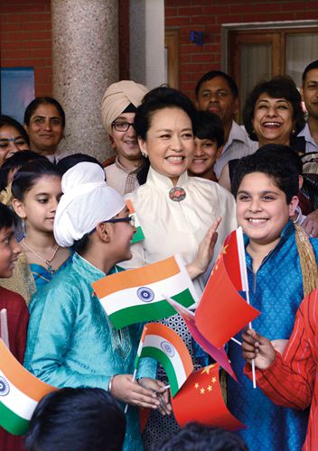 2014年9月18日,彭丽媛访问印度新德里一所国际学校。