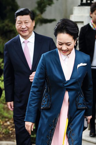 2014年的国际舞台上,彭丽媛和习近平一起留下了许多感人的细节。在印度,彭丽媛应印方之邀坐到秋千上,她试着荡了几下,便拍拍身边的空座,让习近平也坐上来,两人并肩荡起秋千。在北京APEC峰会合影时,彭丽媛向着镜头挥手致意,转头看了习近平一眼,习近平便与夫人节奏一致,挥起手来,这默契的一幕立即在网络上爆红。在澳大利亚,习近平视察“雪龙”号南极科考船,登上一处较高的船舱时,不忘回过头来向彭丽媛伸出手,“来!”拉着她一起进了舱……种种细微之处,流露出夫妻同心、彼此照顾的真情实感。