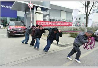 华商报讯 昨日下午3时许,在西安市浐灞汽车主题公园天润沃尔沃4S店门前,5名壮汉拽着一条粗绳,拖着一辆崭新的沃尔沃XC60越野车“游街”,这是怎么回事?
