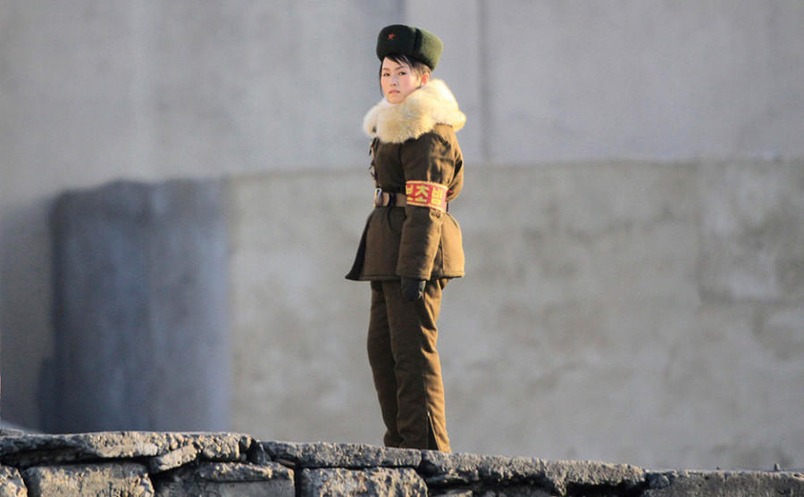 韩国媒体称,2014年12月27日晚,一名朝鲜逃兵持枪闯入与朝鲜接壤的吉林省延边朝鲜族自治州和龙市一村庄,枪杀4名居民后逃跑,当天被中国警方击伤后抓获。而中朝边境线上究竟是什么样子的,本组图带你走进中朝边境线。图为2010年11月23日,一名朝鲜女兵在执勤。