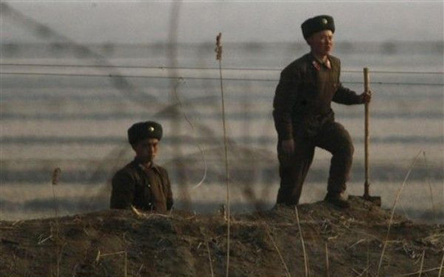 中朝边境地区值勤的朝鲜军人。