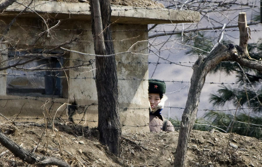 中朝边境地区值勤的朝鲜女军人。