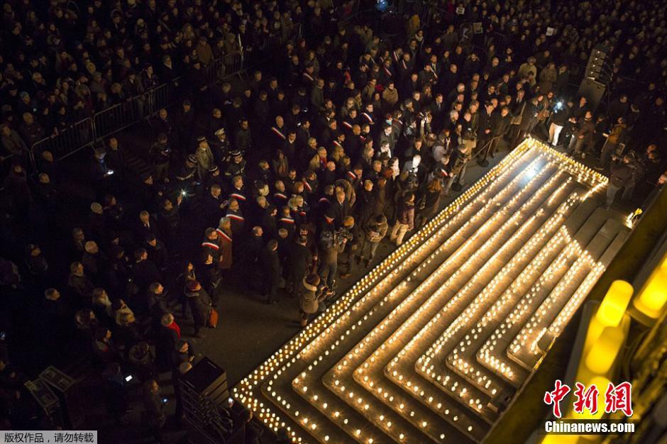 法国民众为《查理周刊》枪击案遇难者守夜(图)