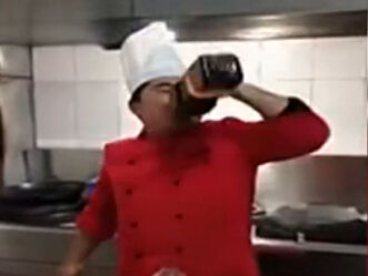 原标题:秒杀一切七八九斤哥 山东一厨师硬灌进七斤酱油醋