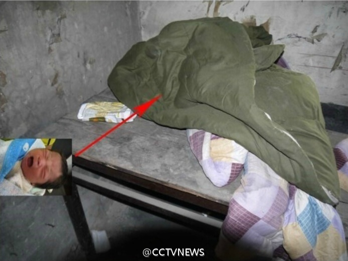 犯罪分子将拐来的孩子藏在一个乡村废弃的传染病医院的太平间里,给孩子喂食方便面,或者是捡来的菜叶。由于这些婴幼儿没有得到悉心呵护和照料,有的出现褥疮,有的婴幼儿被人贩随意丢弃一边,不管死活。图为警方行动时发现,一名婴儿被被窝严密盖着,差点窒息。