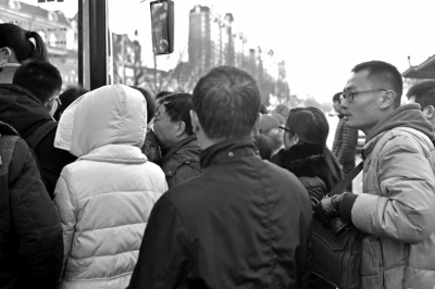 3. 1月9日,王雪(右一)乘坐公交上班。