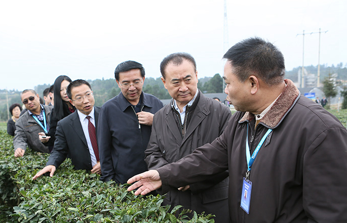 去年12月2日,万达集团董事长王健林(右二)在丹寨县清华科技园铁皮石斛示范种植基地调研。