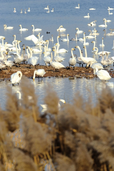 占地6000多公顷的山西平陆黄河湿地位于山西、河南两省交界处,属于三门峡市库区的一部分。这里气候温和,非常适宜白天鹅越冬。每年秋末冬初,有“白精灵”之称的野生白天鹅就会成群结队从俄罗斯西伯利亚地区来到这里栖息过冬。近年来,随着湿地生态环境不断改善,每年到此越冬的大天鹅数量已超过一万只。