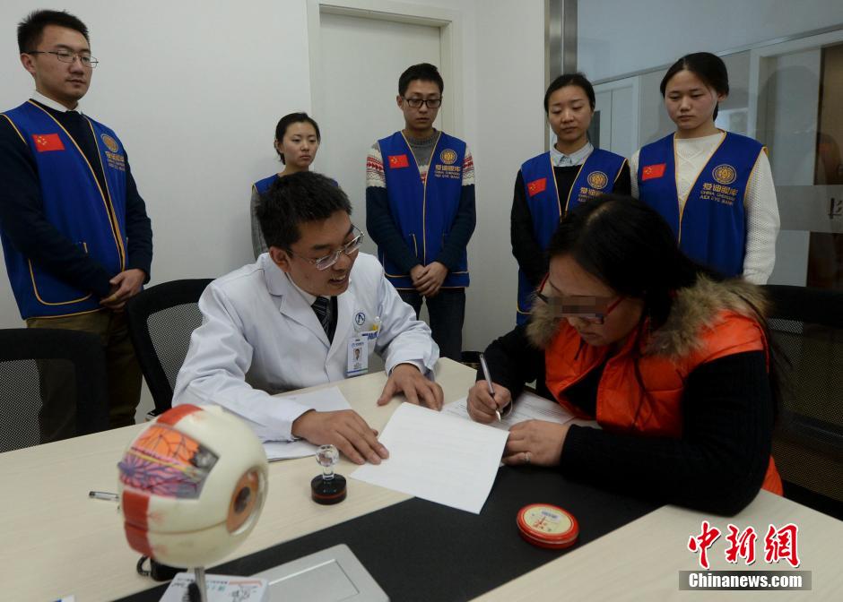 1月17日,受赠者母亲(右一)与爱迪国际联合眼库签署捐献自己眼角膜协议。当日,已故歌星姚贝娜捐赠的一只眼角膜抵达成都,移植手术也随即在成都爱迪眼科医院展开,受赠者是四川凉山州一位23岁的小伙子。受到姚贝娜及姚父姚母的爱心感染,小伙母亲也与爱迪国际联合眼库签订捐献协议,表明愿意在今后也捐出自己的双眼角膜。