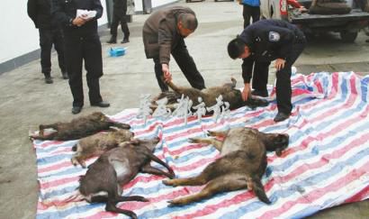 2014年11月19日,芦山县森林公安局查获7只被猎杀的野生?;ざ?。
