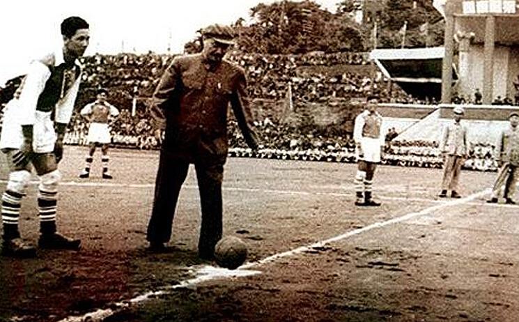 1952年5月4日上午9时,西南区第一届人民体育运动大会在重庆大田湾广场开幕。时任西南军区司令员的贺龙,健步走到足球场中间,为第一场足球比赛举脚开球。贺龙于当年11月兼任中央体委(后改称国家体委、体育总局)主任后, 亲自过问国家足球队的组建、训练、思想建设和赴匈牙利“留学”等事宜。