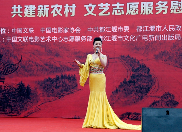 姚林辉参加“我的中国梦,相约都江堰” 文艺志愿服务团慰问演出活动,为观众演唱《茉莉花》