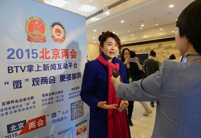 北京市政协十二届三次会议下午三时开幕。图为1月21日上午,北京五洲大酒店委员驻地,田歌委员就热点话题接受媒体采访。