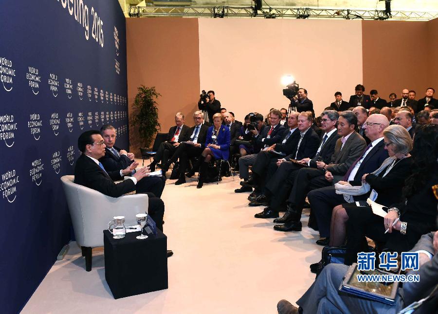 1月21日,中国国务院总理李克强在瑞士达沃斯出席与世界经济论坛国际工商理事会代表对话会。 新华社记者 饶爱民 摄