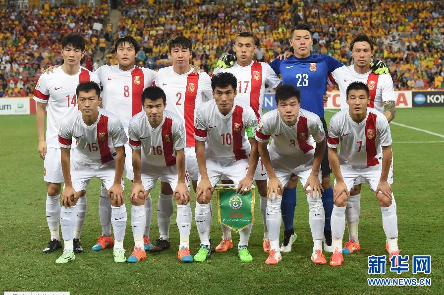 1月22日,中国队首发球员在赛前合影。当日,在澳大利亚布里斯班体育场进行的2015年亚洲杯足球赛四分之一比赛中,中国队对阵澳大利亚队。 新华社记者郭勇摄