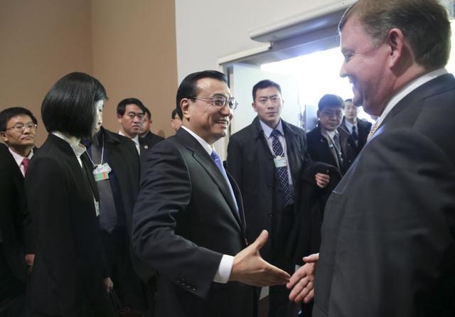 总理与围拢过来的商业领袖一一握手,直接用英语熟练地和他们问候交流。外国投资者最关心中国的经商环境,这一点总理心知肚明。他对大家说,中国政府热烈欢迎外国投资,我们会加大知识产权保护力度,外国企业在中国会享受国内企业的同等待遇。