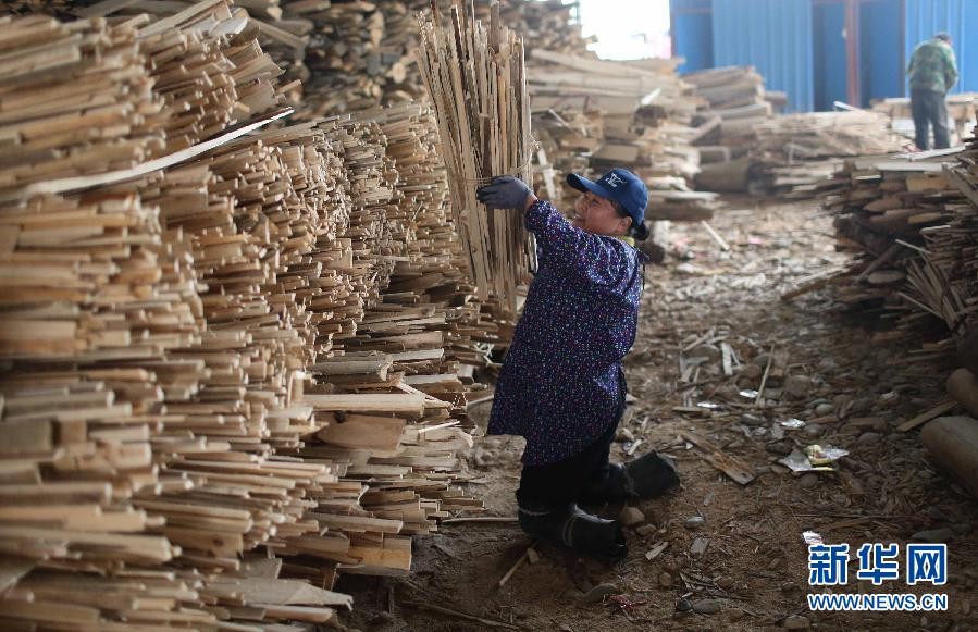 1月25日,胡凤莲把木材捆好后堆放在一起。