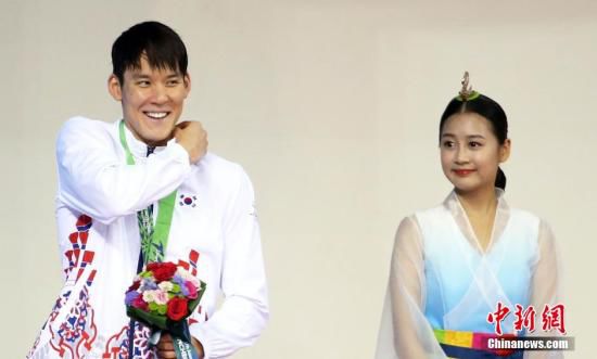 资料图:9月22日,仁川亚运会游泳比赛在文鹤朴泰桓游泳馆展开第二日争夺,朴泰桓率领韩国队夺得男子4X200米自由泳接力铜牌。中新社记者 汤彦俊 摄