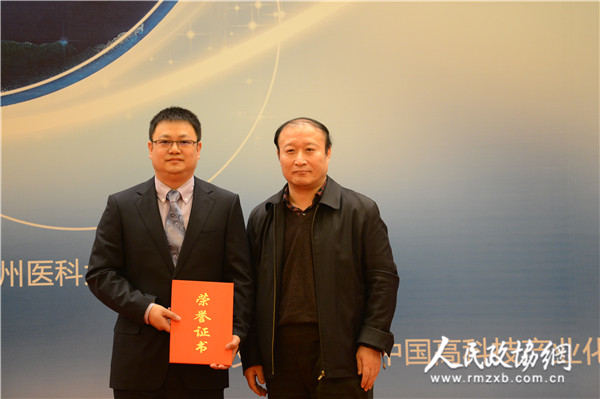 人民政协报社副总编辑张宝川(右)为爱心企业颁发证书。