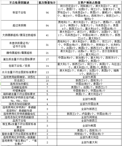 在92批次的新西兰、澳大利亚不合格进境乳制品名单当中,共有22批次的液体奶和冰淇淋制品因超过保质期被检出,13批次奶粉和冰淇淋制品标签不合格,12批次的冰淇淋因大肠杆菌超标被检出,4批次幼儿配方奶粉因铜和硒含量不符合国家标准要求被检出,8批次的奶粉因违规使用化学物质被检出,以上不合格乳制品均已做退货或销毁处理。
