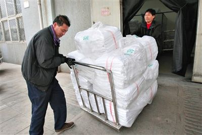 5、 包装入库:将折叠好的卧具10个一捆、50个一袋包装入库,等待发车前取回。