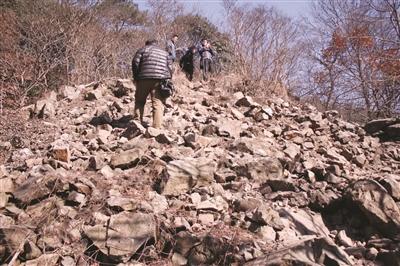 今天要想追寻祭坛的遗迹,可以从紫霞湖东侧的道路上山。山坡脚下,有中山陵园管理局建起的牌坊式木建筑,标示为“六朝北郊坛”。由此沿着石阶上行20多分钟,才进入祭台的范围。在道路两侧,你会看到如刀切般笔直的“石墙”建筑。