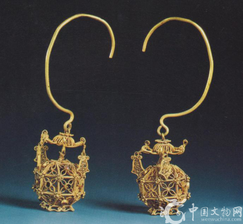 明代金灯笼耳坠(图片来自作家孟晖微博)