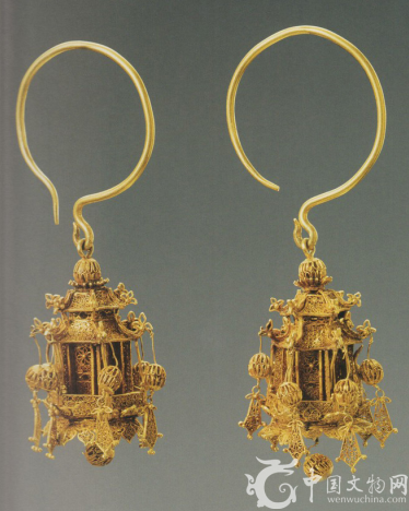 清代宫灯形金耳坠(图片来自作家孟晖微博)