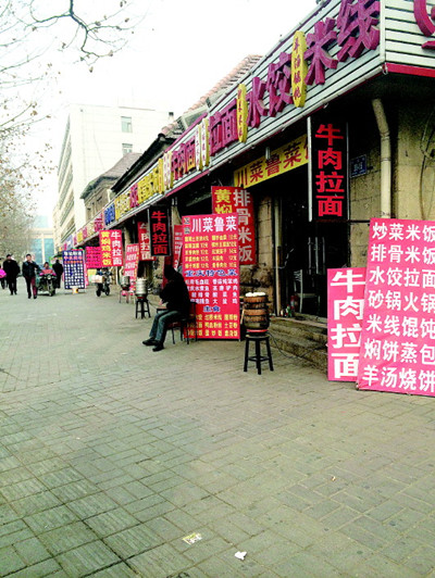 广告牌上炒菜都标着“亲民价”,而面食都未标价。_副本