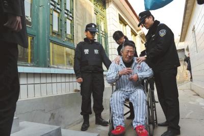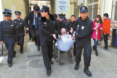 赖在医院近3年的陈某被法警抬上轮椅,带出病房。京华时报记者徐晓帆摄