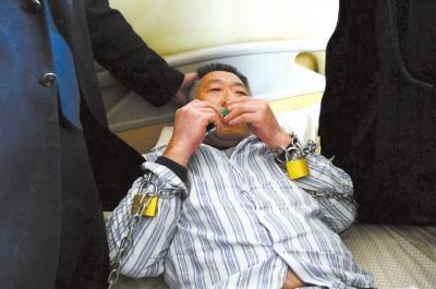陈某则躺在床上不断高呼:“我要治病!”为避免引起混乱,几名执行法官将家属分开并带到隔壁的房间谈话。与此同时,几名法警站在了陈某身边,对他进行安抚。当法警掀起陈某的被子时,所有人都被惊呆了,陈某的双手都被锁上了锁链,左手被锁在床头、右手被锁在旁边的一张病床上。