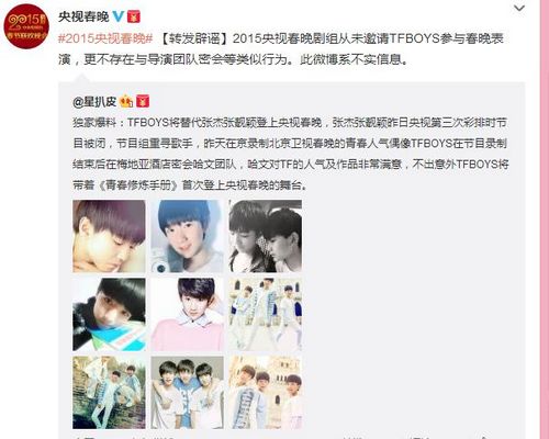 关键词:TFBOYS上春晚 春晚剧组辟谣 TFBOYS将替代张杰靓颖上春晚