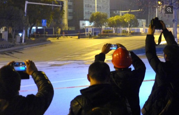 武汉闹市区发生V字形地陷 面积约300平米