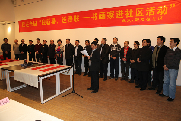 “迎新春、送春联—书画家进社区活动”是民进中央社会服务部、民进中央开明画院在全会号召发起的一项社会服务活动,鼓楼苑社区作为活动的北京主会场,在此前后,全国各级民进开明画院和书画院,组织民进书画界会员进社区,接地气,用手中的毛笔弘扬和传承中华优秀传统文化,传播正能量,把祝福送到千家万户,把“服务就在身边,人人可以参与”的公益理念落到实处,为老百姓办看得见、摸得着的好事和实事。