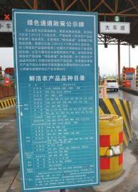 成绵复线彭州九尺收费站摆放的绿色通道政策公示牌。