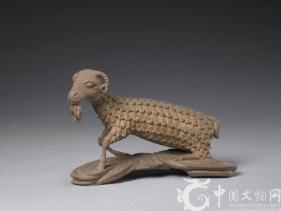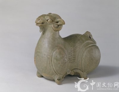 青釉羊,西晋,高13.5cm,长15.0cm,宽11cm。羊呈卧伏状,昂首张口,体态肥硕。背部饰对称的线条纹。两肋刻划羽翼。釉色青绿,晶莹润泽。羊首上端开一圆洞。羊在中国古代被视为祥瑞动物,羊形青瓷成为一时风尚。(北京故宫博物院丁孟)