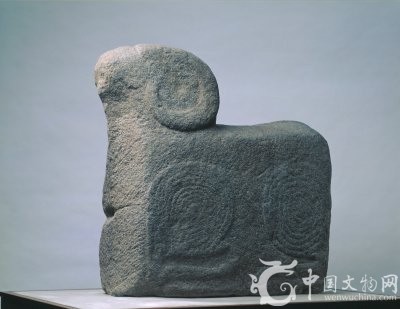 石羊,高99cm,长100cm。石羊用整块石头圆雕而成。羊角侧卷成“C”形,体两侧羊毛为同心圆状,腿跪卧,前部刻有铭文“永和五年大□□□月九日西郭记子丁次渔孙仲乔所作羊”。永和为东汉顺帝刘保使用的年号,五年为公元140年。石羊传出自山东临沂县石羊镇。(北京故宫博物院冯贺军)