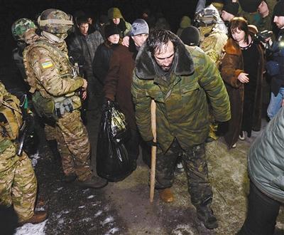 2月21日,东部卢甘斯克市西郊,政府军与民间武装交换战俘。政府军移交了52名民间武装成员,民间武装组织移交了139名政府军士兵。