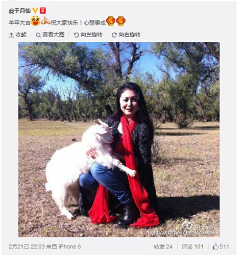 中新网2月25日 近日,赵本山小姨子于月仙在微博晒出生活照,照片中,她身穿牛仔裤搭配深色外套,佩戴红色围巾,怀里还抱着一只小羊。